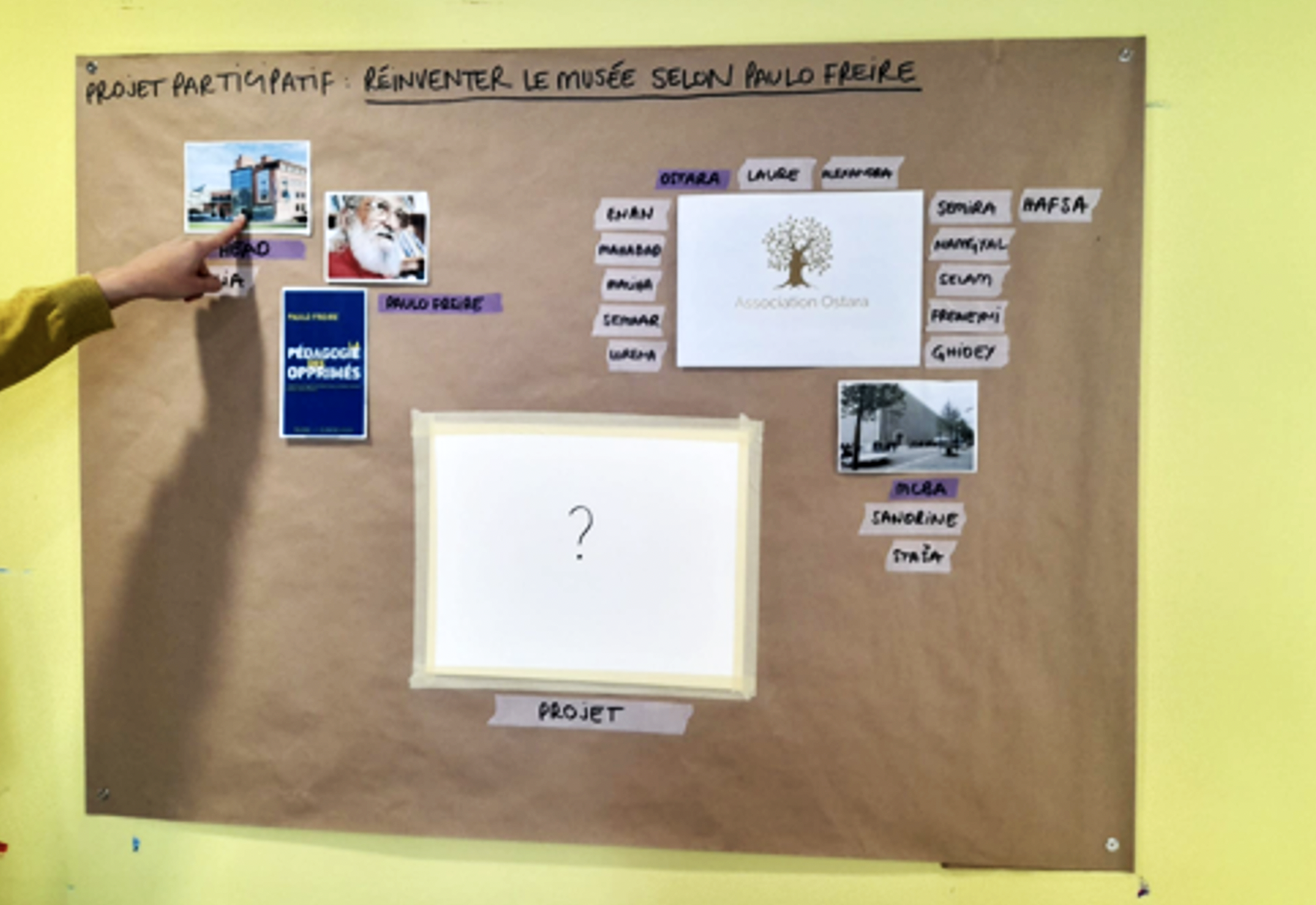 Dans le cas du volet de la recherche menée à Lausanne (MCBA - Ostara), le travail de visualisation a non seulement accompagné le dialogue entre les participantes et avec les médiatrices, mais a également facilité la production finale commune. Cette visualisation a pris la forme d’un journal de bord mural, un objet de travail évolutif, un témoin des directions possibles de la collaboration et un outil précieux de travail réflexif sur le projet.