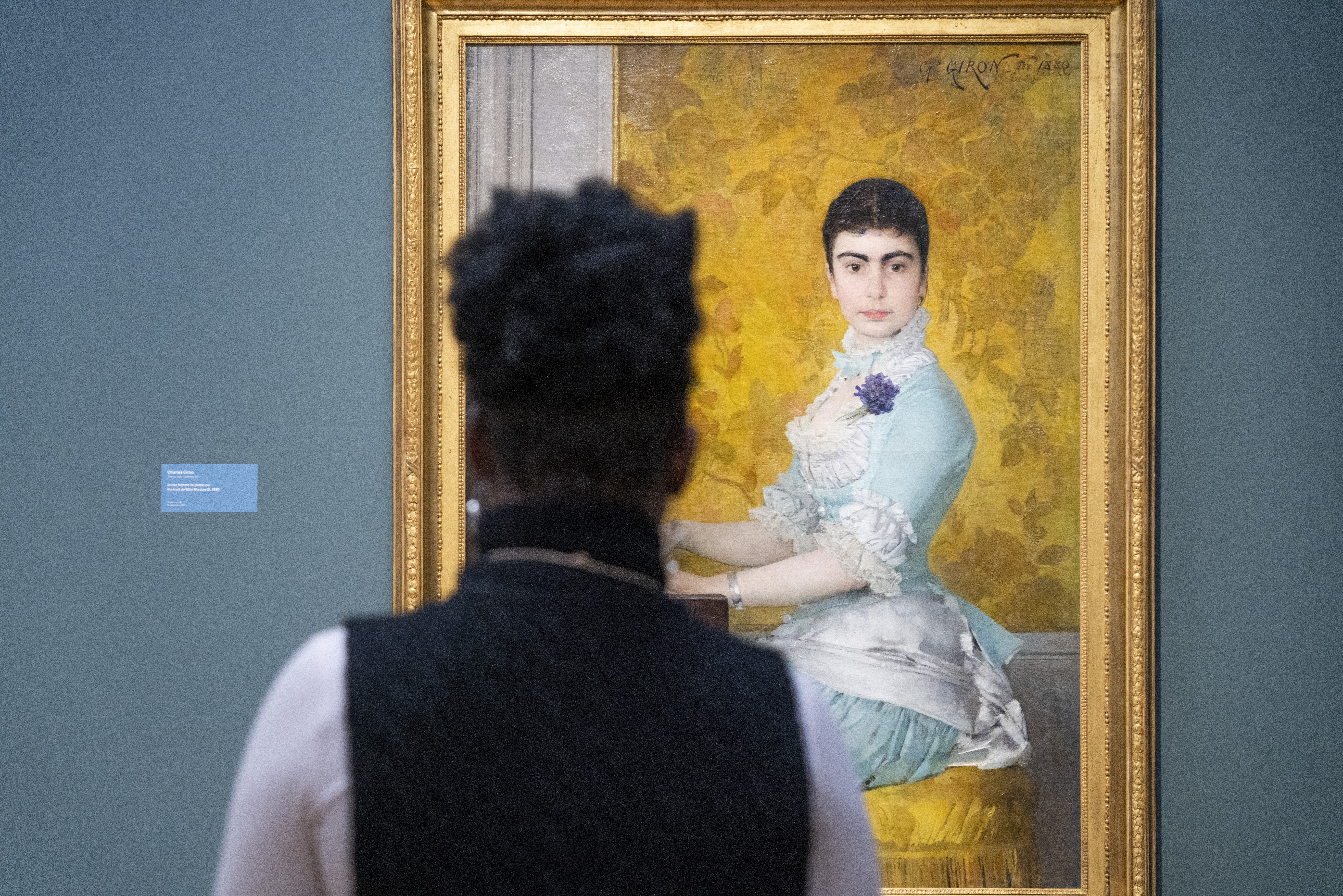 Henriette commente en lingala « Jeune femme au piano ou Portrait de Mlle Maguie D. » de Charles Giron (1880). Elle exprime la valeur qu’a la musique dans sa vie et la force qu’elle lui a apportée et qui continue de l’accompagner dans un monde fait de problèmes, qui jamais ne prendront fin.